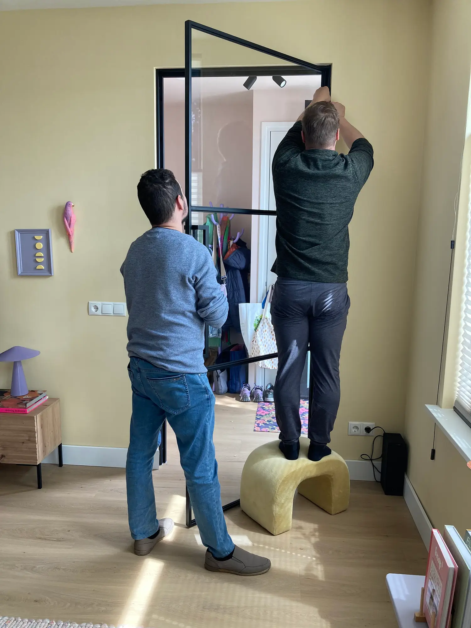 Hoewel ik bij mijn eerste Loftdeur koos voor de inmeet- en installatieservice, waarbij professionals de exacte afmetingen van mijn deuren zouden vaststellen, realiseerde ik me voor de tweede deur dat dit een luxe was. Als je handig bent met het meten en nauwkeurigheid geen probleem is, kun je dit ook zelf doen of iemand vragen die hier ervaring mee heeft.