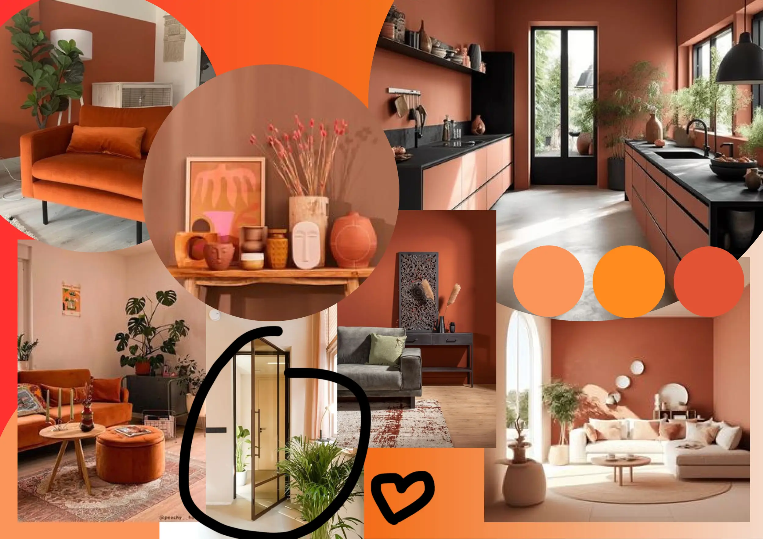 De hoofdkleur van het moodboard werd terracotta gemixt met een vleugje oud roze en oranje.