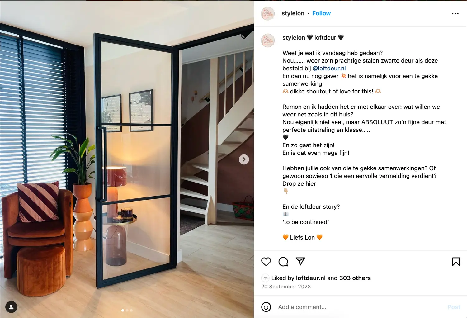 Ik had een eigen visie op wat ik wilde en Loftdeur heeft mij met hun custom Expertline geholpen de visie tot leven te brengen. Beste keuze ooit! Echt lekker thuis komen.